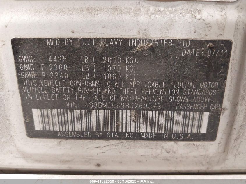 2011 SUBARU LEGACY 2011 Gasoline, 2.5, Full drive, VIN - 4S3BMCK69B3****** from the USA