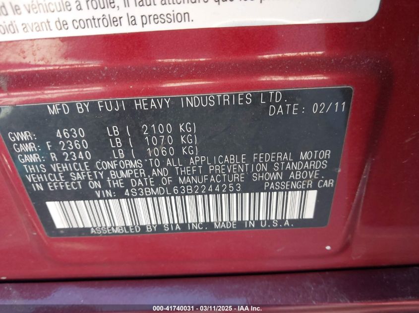 2011 SUBARU LEGACY 2011 Gasoline, 3.6, Full drive, VIN - 4S3BMDL63B2****** from the USA
