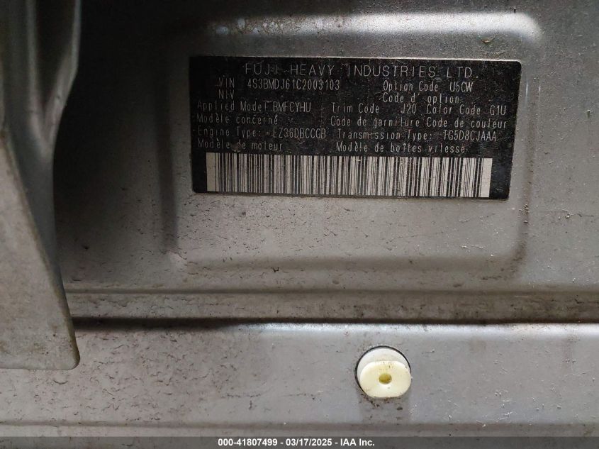 Color WhiteCylinders 6Drive Full driveVIN 4S3BMDJ61C2******State Run & Drive VerifiedDamage All over the car AutoRIA