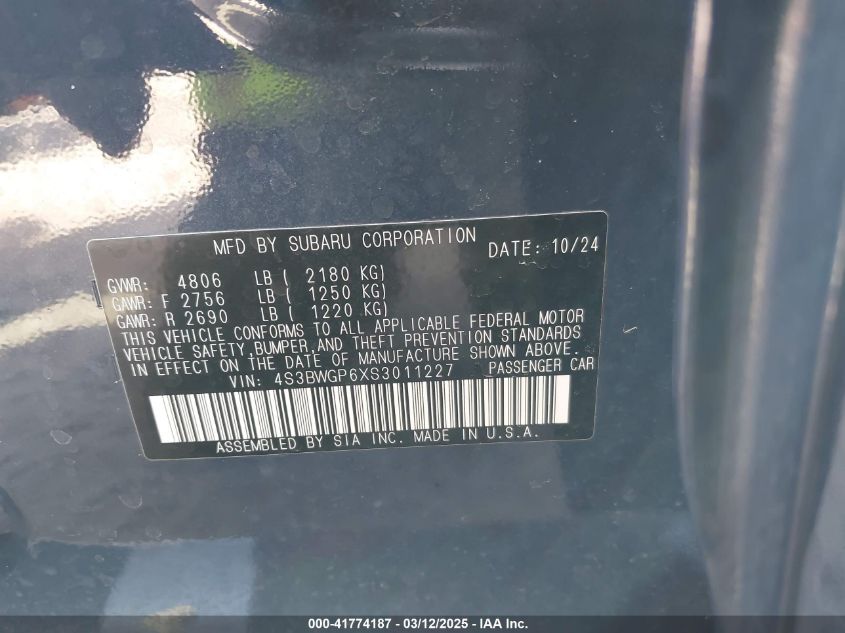 2025 SUBARU LEGACY 2025 Gasoline, 2.4, Full drive, VIN - 4S3BWGP6XS3****** from the USA