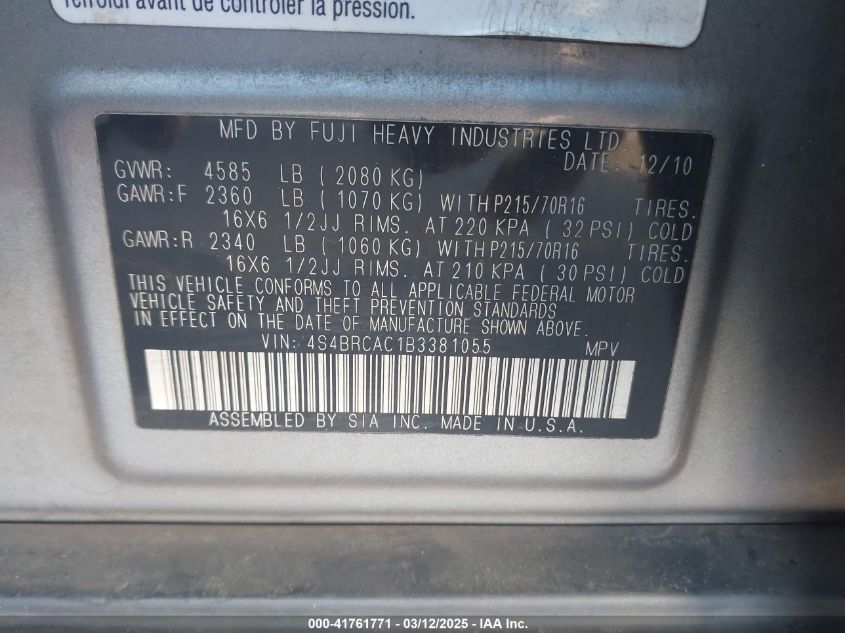 2011 SUBARU OUTBACK 2011 Gasoline, 2.5, Full drive, VIN - 4S4BRCAC1B3****** from the USA