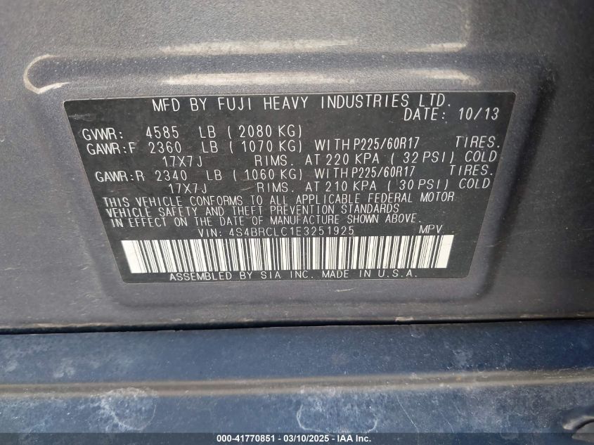 Color GrayCylinders 4Drive Full driveVIN 4S4BRCLC1E3******State Run & Drive VerifiedDamage Front or back AutoRIA