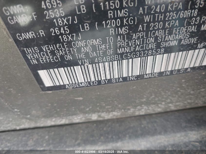 2016 SUBARU OUTBACK 2016 Gasoline, 2.5, Full drive, VIN - 4S4BSBLC5G3****** from the USA