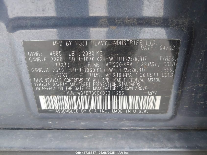 Color BlueCylinders 4Drive Full driveVIN 4S4BRBCCXD3******State Run & Drive VerifiedDamage Front or backAuction date 2025-03-20 AutoRIA