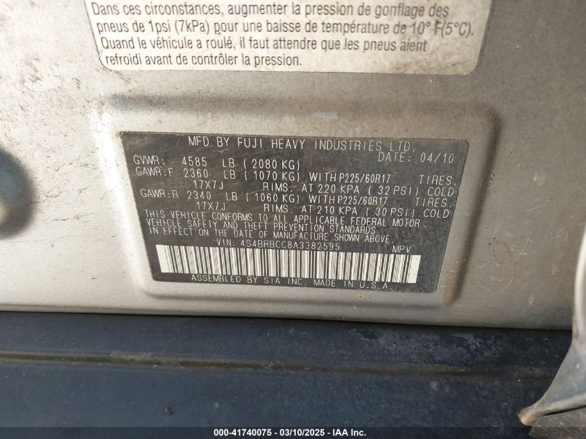 2010 SUBARU OUTBACK 2010 Gasoline, 2.5, Full drive, VIN - 4S4BRBCC8A3****** from the USA
