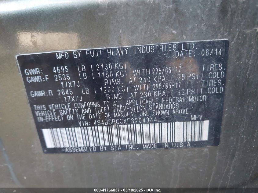 2015 SUBARU OUTBACK 2015 Gasoline, 2.5, Full drive, VIN - 4S4BSBCCXF3****** from the USA