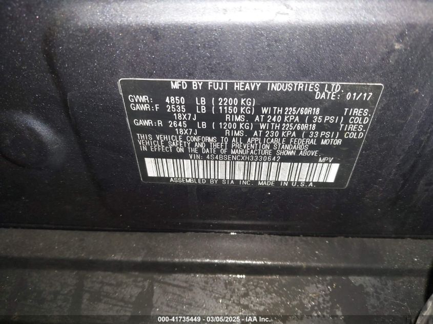 2017 SUBARU OUTBACK 2017 Gasoline, 3.6, Full drive, VIN - 4S4BSENCXH3****** from the USA