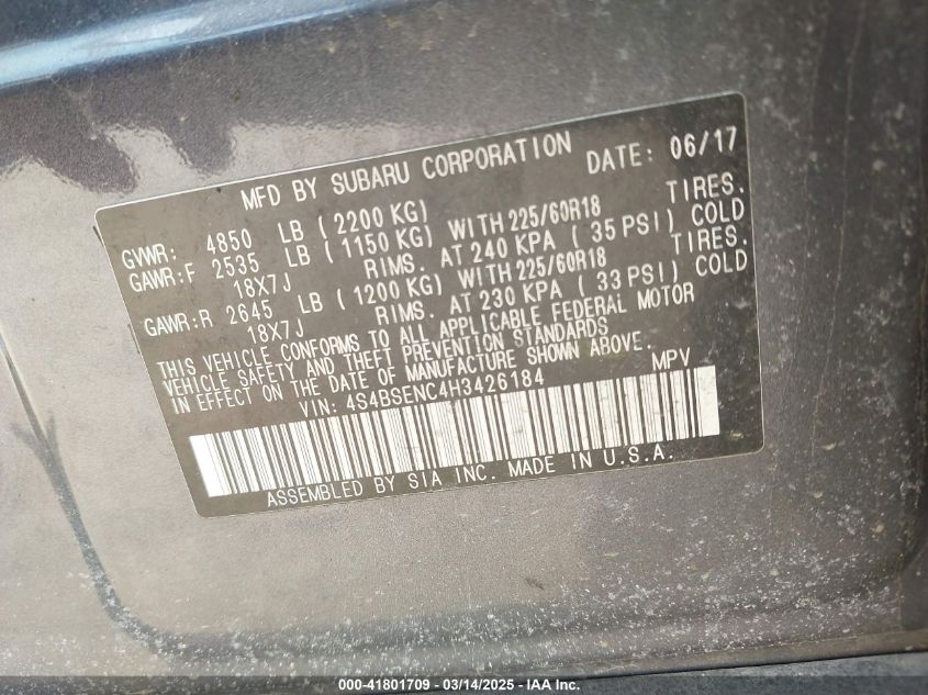 2017 SUBARU OUTBACK 2017 Gasoline, 3.6, Full drive, VIN - 4S4BSENC4H3****** from the USA
