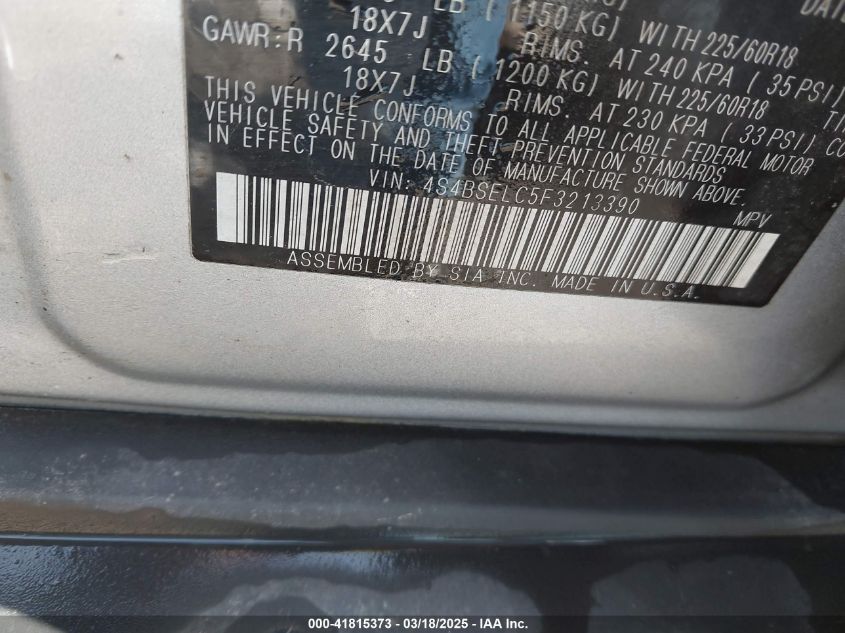 Color SilverCylinders 6Drive Full driveVIN 4S4BSELC5F3******State Run & Drive VerifiedDamage Front or back AutoRIA