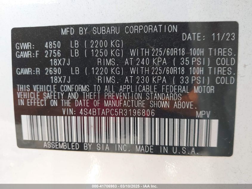 2024 SUBARU OUTBACK 2024 Gasoline, 2.5, Full drive, VIN - 4S4BTAPC5R3****** from the USA