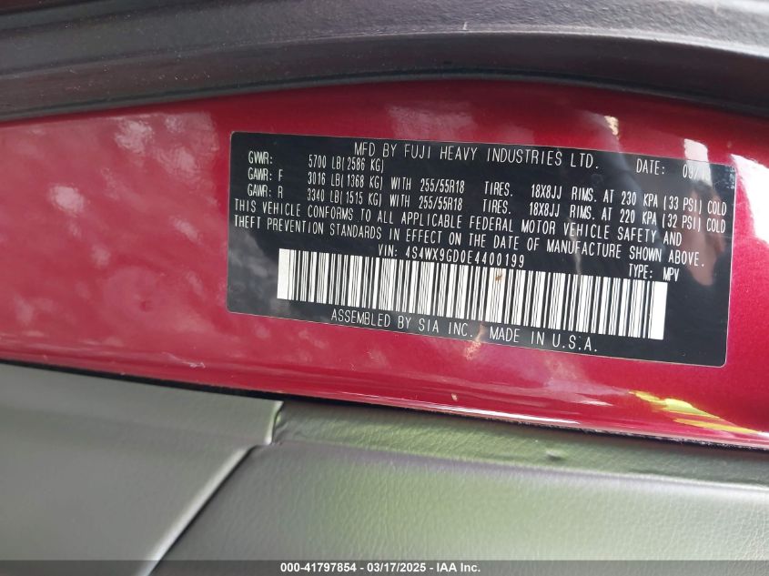 2014 SUBARU TRIBECA 2014 Gasoline, 3.6, Full drive, VIN - 4S4WX9GD0E4****** from the USA