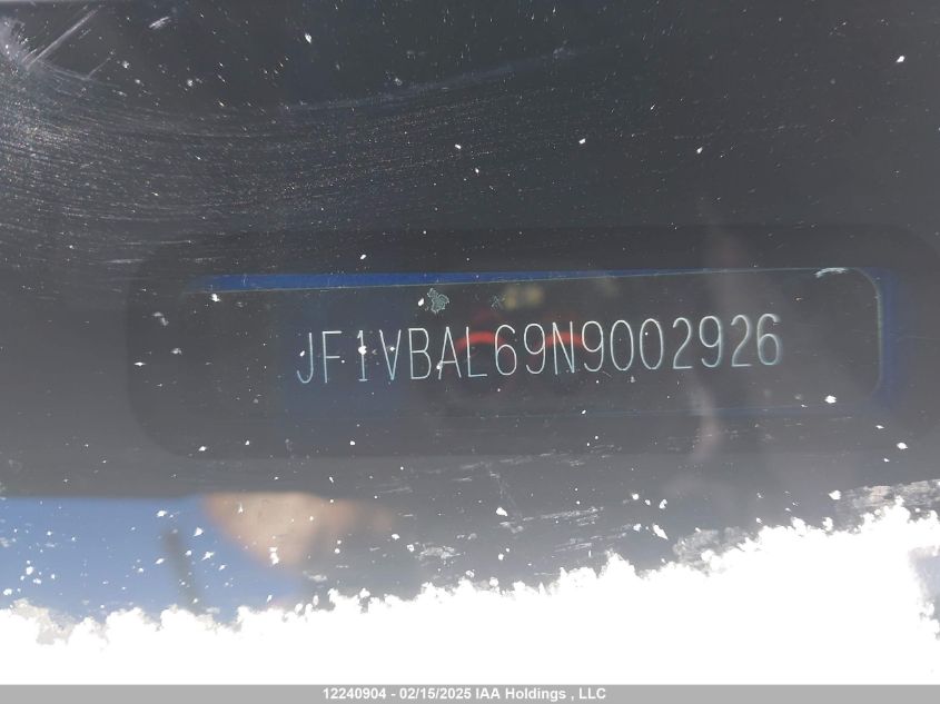 Color BlueCylinders 4Drive UnknownVIN JF1VBAL69N9******State Run & Drive VerifiedDamage InsignificantAuction date 2025-03-21 AutoRIA
