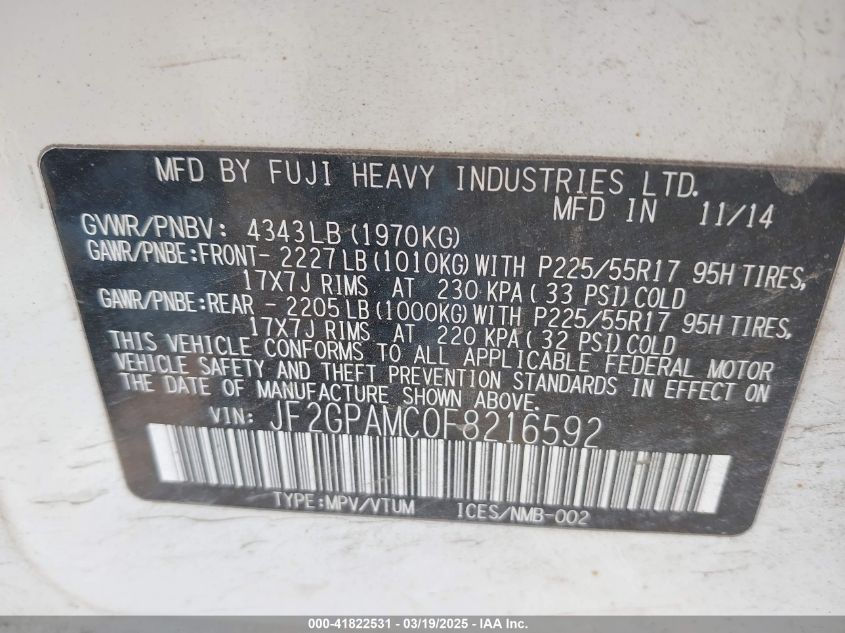 2015 SUBARU XV 2015 Gasoline, 2.0, Full drive, VIN - JF2GPAMC0F8****** from the USA