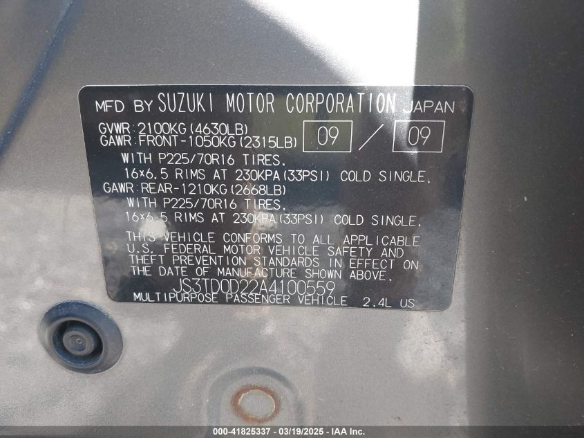 2010 SUZUKI GRAND VITARA 2010 Gasoline, 2.4, Full drive, VIN - JS3TD0D22A4****** from the USA