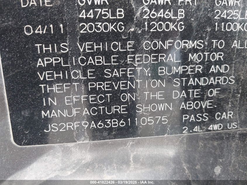 2011 SUZUKI KIZASHI 2011 Gasoline, 2.4, Full drive, VIN - JS2RF9A63B6****** from the USA