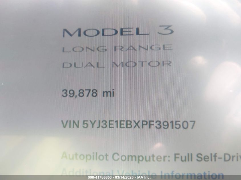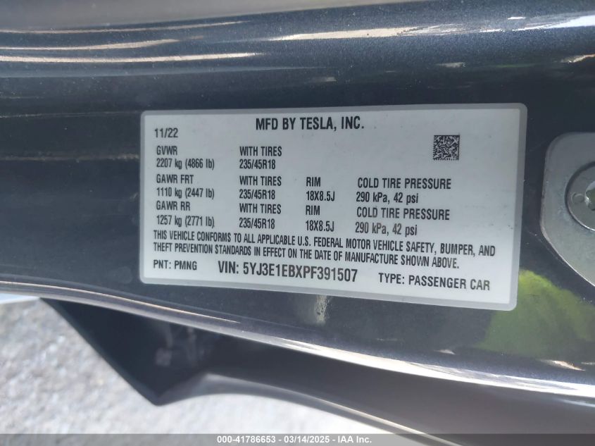 2023 TESLA MODEL 3 2023 Electric, U, Full drive, VIN - 5YJ3E1EBXPF****** from the USA