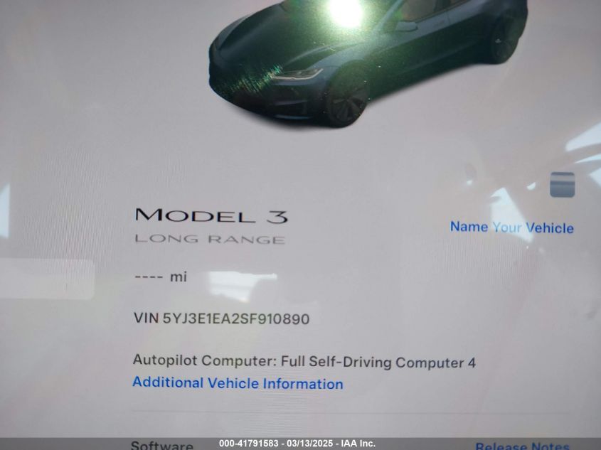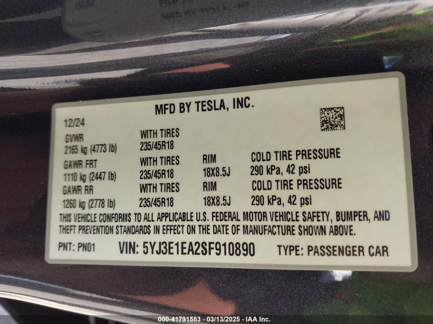 2025 TESLA MODEL 3 2025 Electric, U, Rear wheel drive, VIN - 5YJ3E1EA2SF****** from the USA