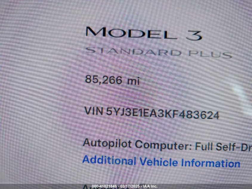 Color WhiteDrive Rear wheel driveVIN 5YJ3E1EA3KF******State Run & Drive VerifiedDamage Front or back AutoRIA