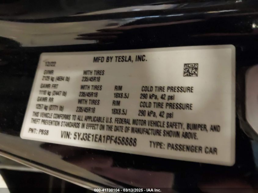 2023 TESLA MODEL 3 2023 Electric, U, Rear wheel drive, VIN - 5YJ3E1EA1PF****** from the USA