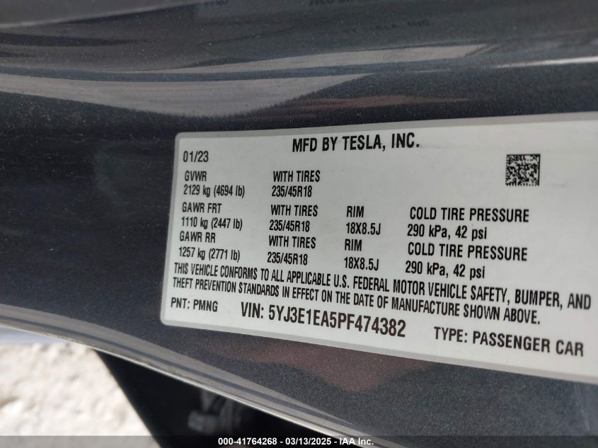 2023 TESLA MODEL 3 2023 Electric, U, Rear wheel drive, VIN - 5YJ3E1EA5PF****** from the USA