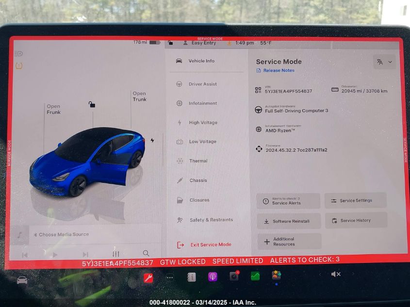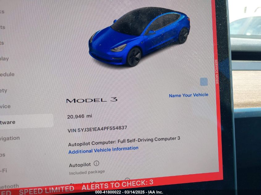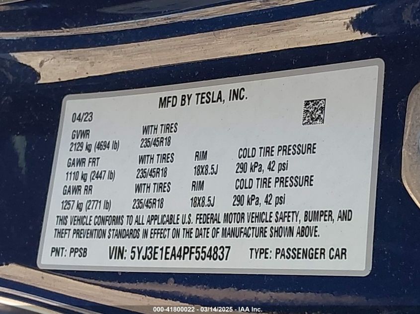 2023 TESLA MODEL 3 2023 Electric, U, Rear wheel drive, VIN - 5YJ3E1EA4PF****** from the USA
