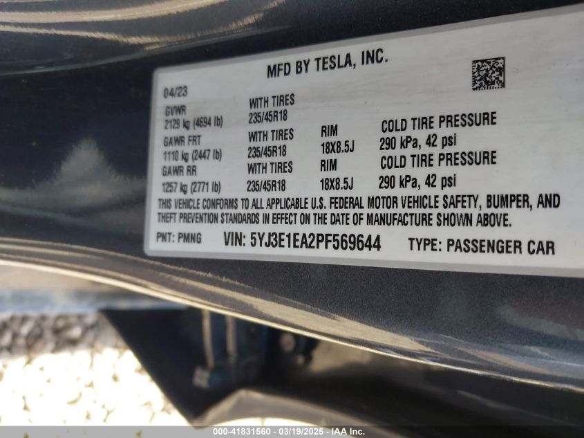 2023 TESLA MODEL 3 2023 Electric, U, Rear wheel drive, VIN - 5YJ3E1EA2PF****** from the USA