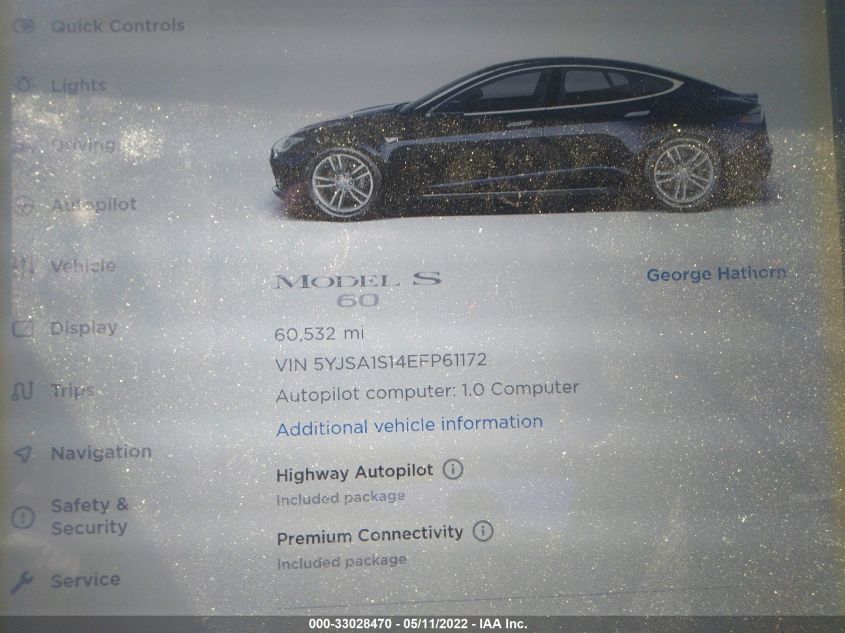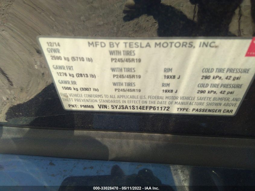 2014 TESLA MODEL S 2014 Electric, 3.0, Rear wheel drive, VIN - 5YJSA1S14EF****** from the USA