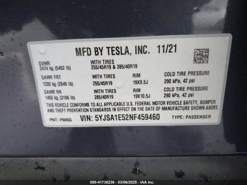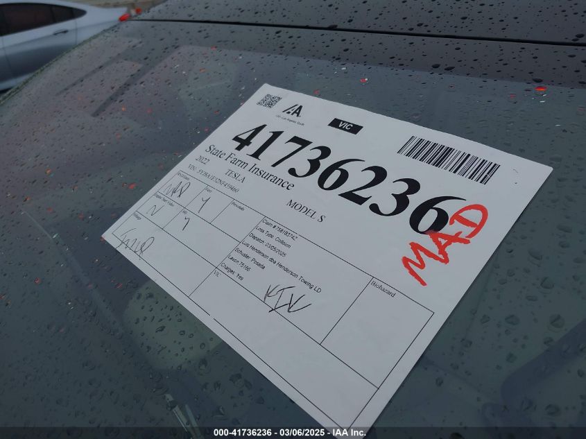 2022 TESLA MODEL S 2022 Electric, U, Full drive, VIN - 5YJSA1E52NF****** from the USA