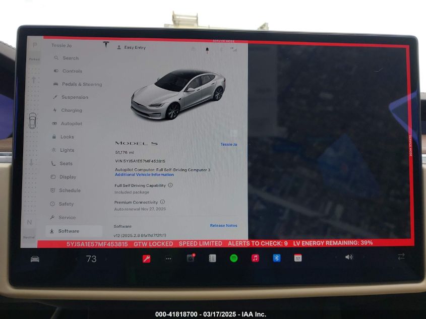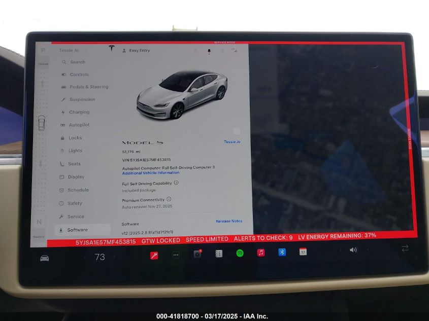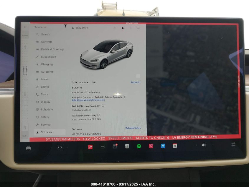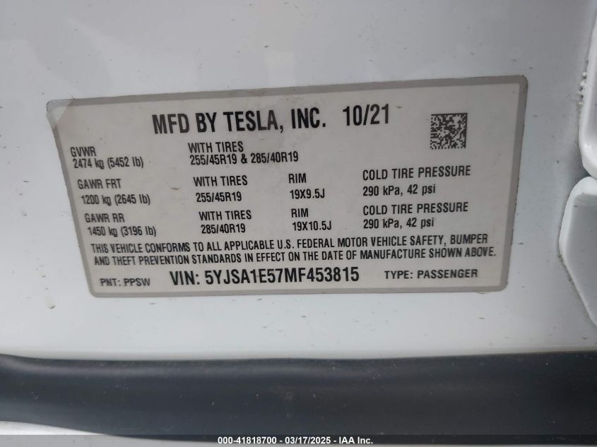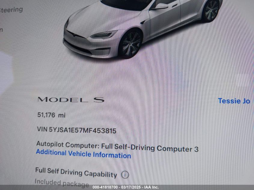 2021 TESLA MODEL S 2021 Electric, U, Full drive, VIN - 5YJSA1E57MF****** from the USA