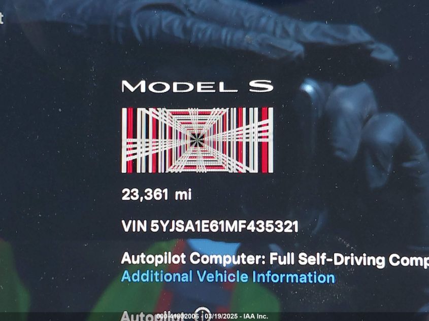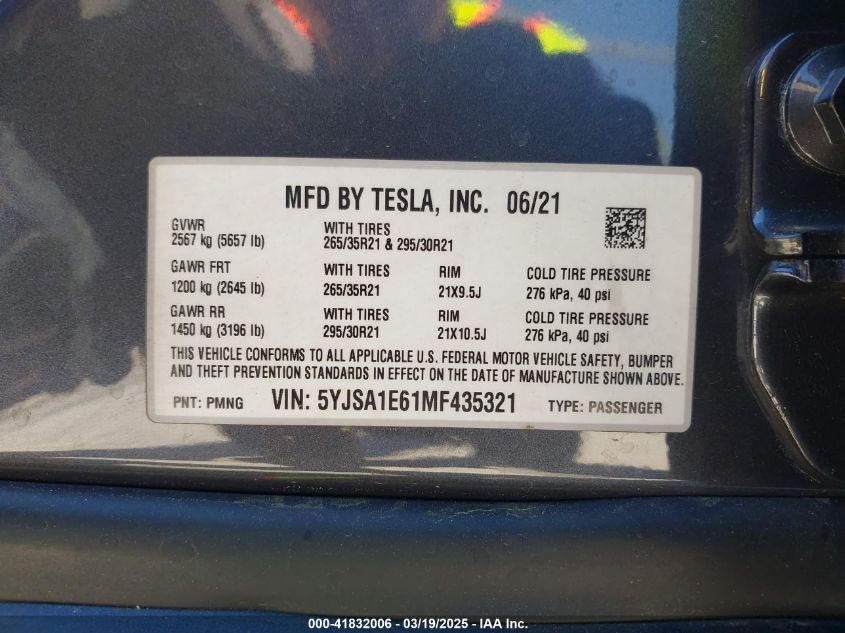 2021 TESLA MODEL S 2021 Electric, U, Full drive, VIN - 5YJSA1E61MF****** from the USA