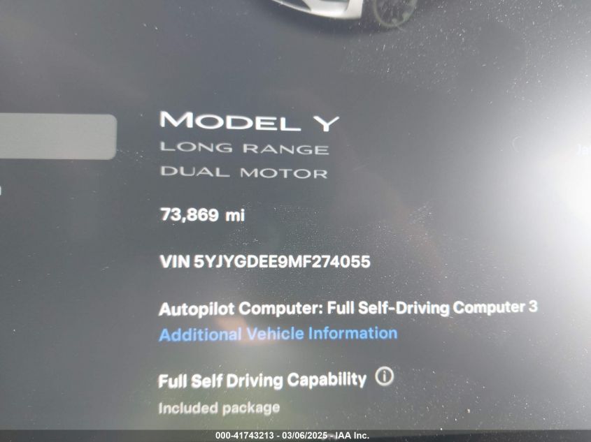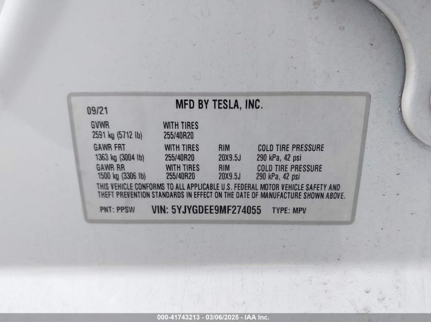 2021 TESLA MODEL Y 2021 Electric, U, Full drive, VIN - 5YJYGDEE9MF****** from the USA