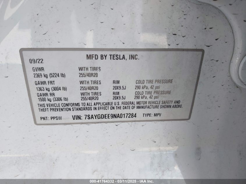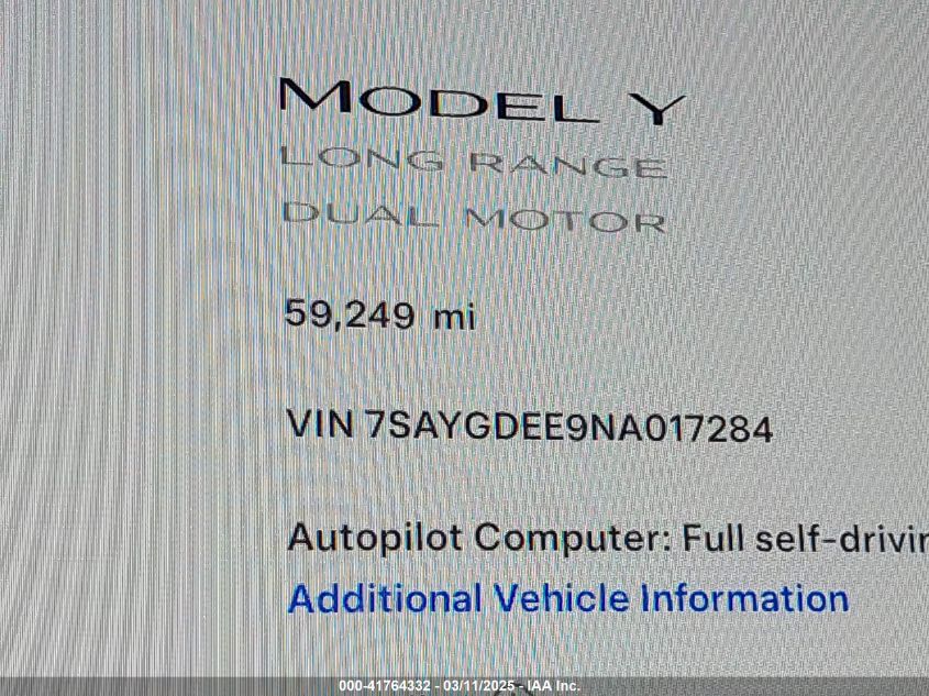 2022 TESLA MODEL Y 2022 Electric, U, Full drive, VIN - 7SAYGDEE9NA****** from the USA