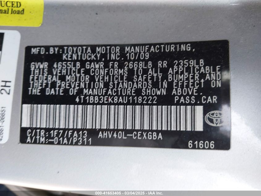 2010 TOYOTA CAMRY HYBRID 2010 Hybrid, 2.4, Front wheel drive, VIN - 4T1BB3EK8AU****** from the USA