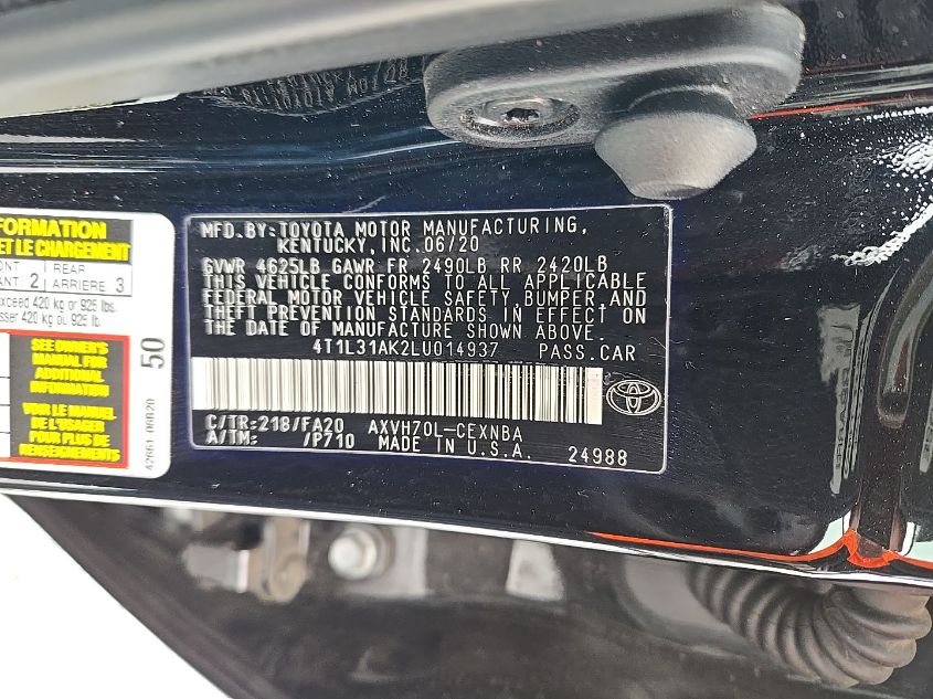 Color Cylinders 4Drive Front wheel driveVIN 4T1L31AK2LU******State Run & Drive VerifiedDamage InsignificantAuction date 2025-06-01 AutoRIA