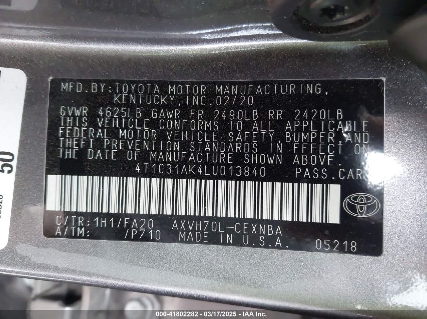 2020 TOYOTA CAMRY HYBRID 2020 Hybrid, 2.5, Front wheel drive, VIN - 4T1C31AK4LU****** from the USA