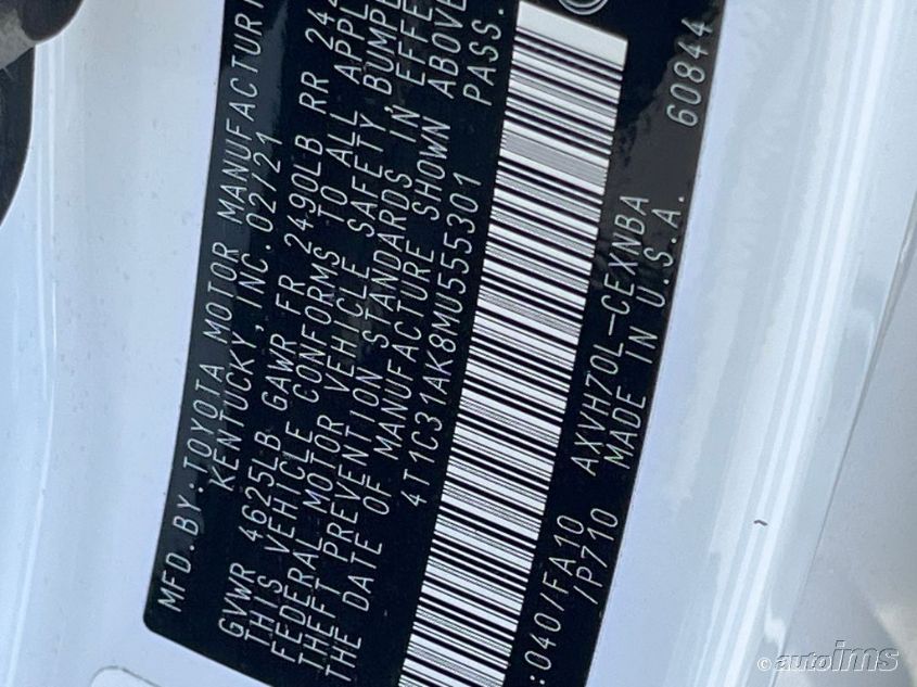 Color Cylinders 4Drive Front wheel driveVIN 4T1C31AK8MU******State Run & Drive VerifiedDamage InsignificantAuction date 2025-06-01 AutoRIA