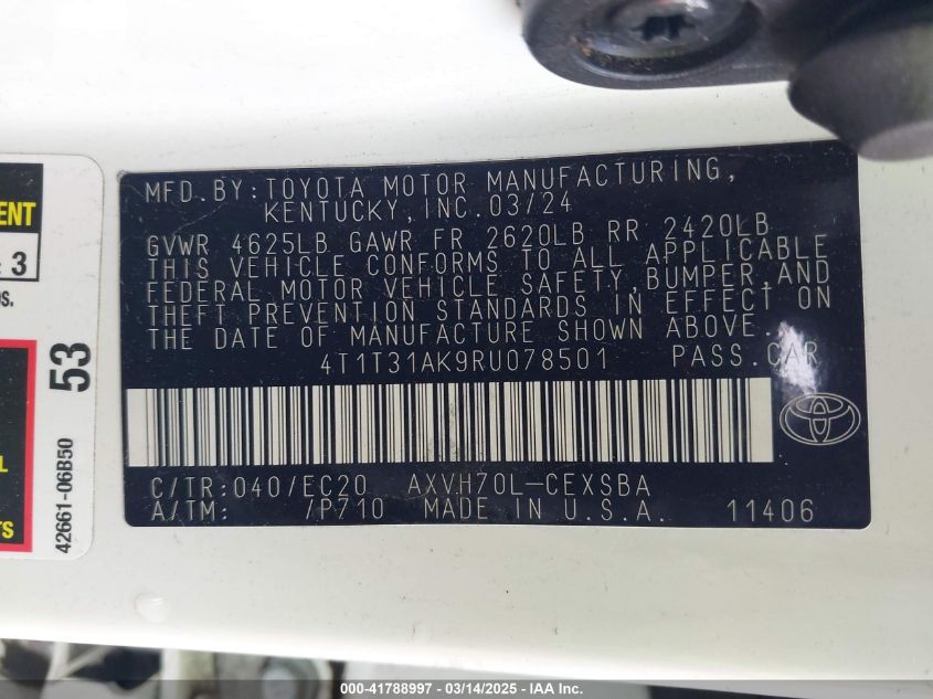 2024 TOYOTA CAMRY HYBRID 2024 Hybrid, 2.5, Front wheel drive, VIN - 4T1T31AK9RU****** from the USA