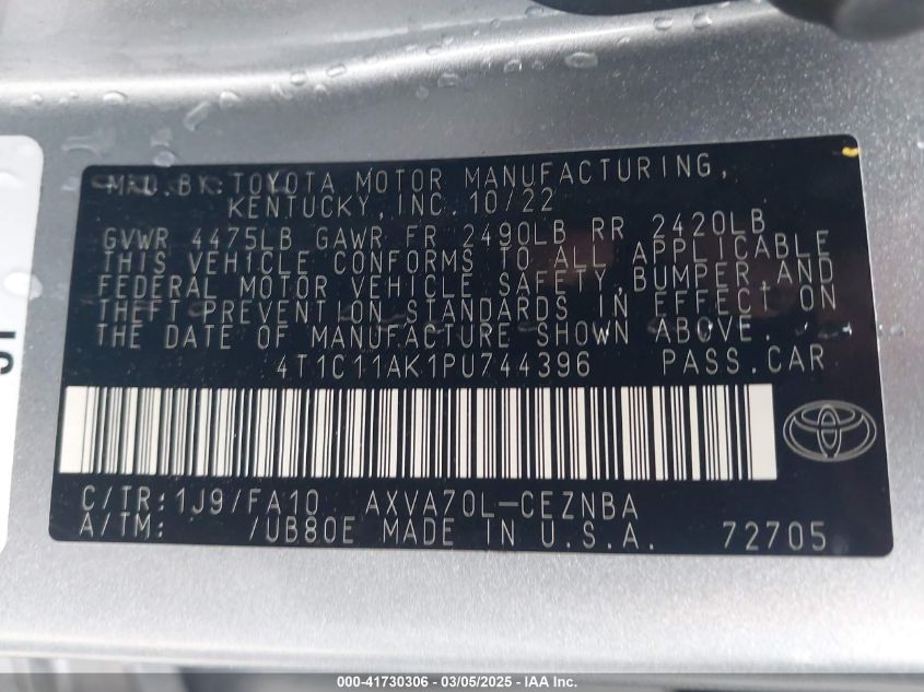 2023 TOYOTA CAMRY 2023 Gasoline, 2.5, Front wheel drive, VIN - 4T1C11AK1PU****** from the USA