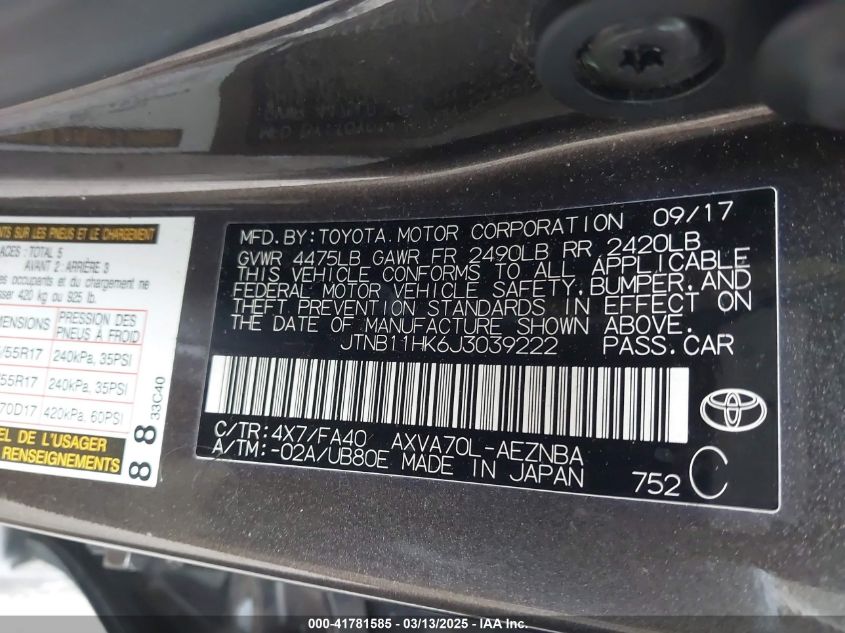 Color BlackCylinders 4Drive Front wheel driveVIN JTNB11HK6J3******State Run & Drive VerifiedDamage Front or back AutoRIA