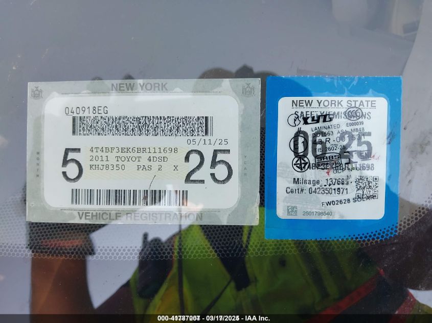 Color SunburnCylinders 4Drive Front wheel driveVIN 4T4BF3EK6BR******State Run & Drive VerifiedDamage Rear left AutoRIA
