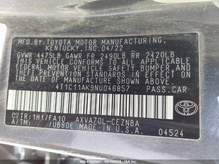 2022 TOYOTA CAMRY 2022 Gasoline, 2.5, Front wheel drive, VIN - 4T1C11AK9NU****** from the USA