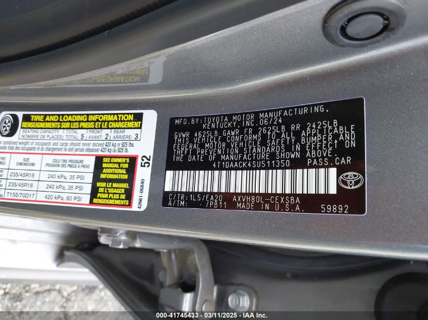 2025 TOYOTA CAMRY 2025 Hybrid, 2.5, Front wheel drive, VIN - 4T1DAACK4SU****** from the USA