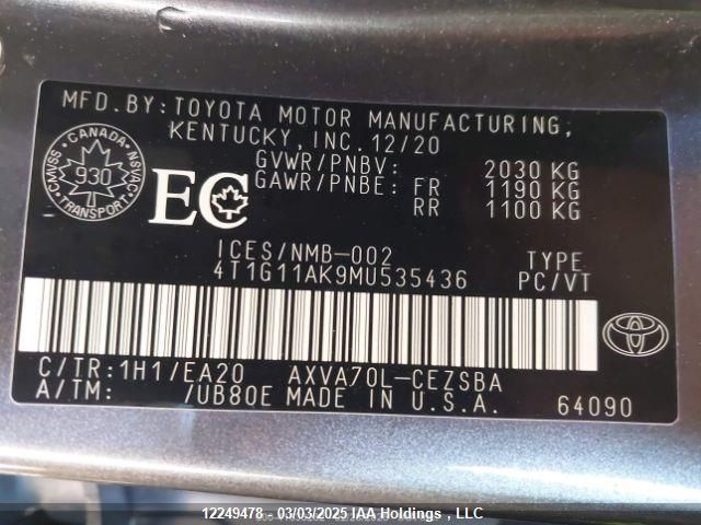 2021 TOYOTA CAMRY 2021 Gasoline, , Unknown, VIN - 4T1G11AK9MU****** from the USA