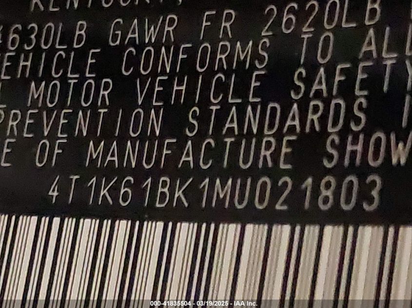 2021 TOYOTA CAMRY 2021 Gasoline, 2.5, Full drive, VIN - 4T1K61BK1MU****** from the USA