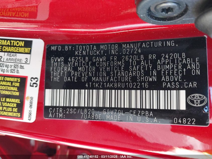 2024 TOYOTA CAMRY 2024 Gasoline, 3.5, Front wheel drive, VIN - 4T1KZ1AK8RU****** from the USA