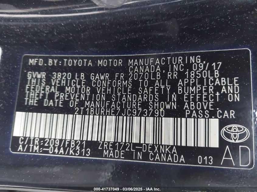 2018 TOYOTA COROLLA 2018 Gasoline, 1.8, Front wheel drive, VIN - 2T1BURHE7JC****** from the USA