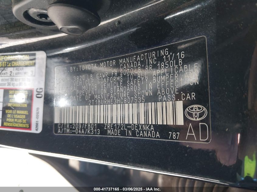 2017 TOYOTA COROLLA 2017 Gasoline, 1.8, Front wheel drive, VIN - 2T1BURHE3HC****** from the USA