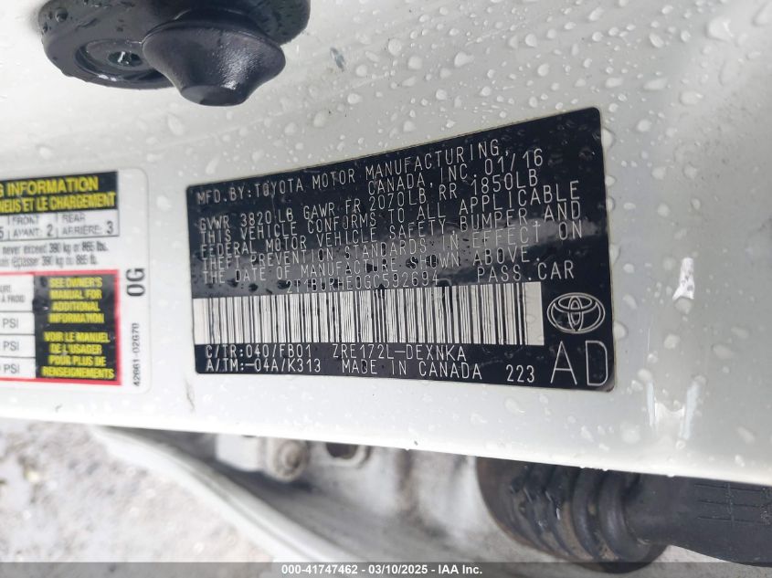 Color WhiteCylinders 4Drive Front wheel driveVIN 2T1BURHE0GC******State Run & Drive VerifiedDamage Front left AutoRIA