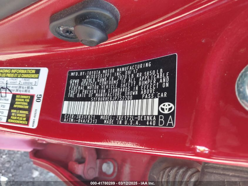2018 TOYOTA COROLLA 2018 Gasoline, 1.8, Front wheel drive, VIN - 5YFBURHE6JP****** from the USA