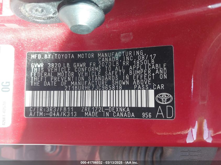Color RedCylinders 4Drive Front wheel driveVIN 2T1BURHE7JC******State Run & Drive VerifiedDamage Front or back AutoRIA